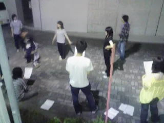 我々「女芝居」のメンバーは蛍狩りへ向かう万民を見送り、学校でレッツお稽古!