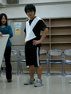 今日は芥川公民館で稽古でした。 本番まで一ヵ月をきったという事もありまして、稽古の方もだんだんと本格的になってきてます 音響が入ったり小道具が入ったり。 ちょっとした事でもそれだけで稽古場の雰囲気がまた違ったものになって、見ている方もとても興味深いですね。